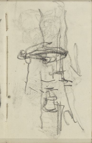 George Hendrik Breitner made this sketch, "Figures by a Harnessed Horse, possibly on the Dam in Amsterdam," employing charcoal on paper. Breitner was known for capturing the dynamism of city life, particularly the working class in Amsterdam. This sketch offers a glimpse into the late 19th-century Dutch society. The Dam Square, likely the setting, was not just a geographical center but also a social stage where class distinctions played out visibly. Here we have the figures, perhaps waiting for transport, juxtaposed against the backdrop of what would have been a bustling urban environment. Breitner's choice of subject matter and the medium itself—a quick, accessible sketch—speaks to his interest in the everyday experiences of ordinary people. Breitner once said he aimed to paint "the people as they are," and this sketch seems to echo that sentiment. The rough strokes and unfinished quality mirror the raw, unpolished reality of urban life. It invites us to consider the lives of those often overlooked and the silent stories embedded in public spaces.