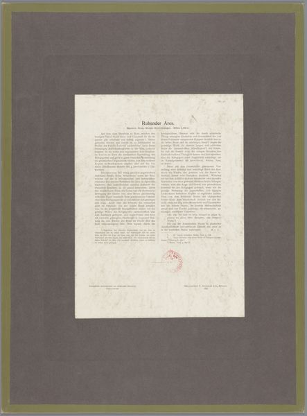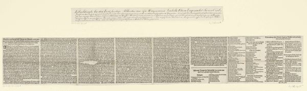 Curator: Welcome! Today, we're exploring "Beschrijving van de provincie Overijssel door Wilhelm Nagge," specifically the third page of this description. Created after 1647 by Wilhelm Nagge, it’s an engraving on paper. Editor: It has such an antiquated feel! The dense text, framed by aged paper... it's as if peering into a historical document. It's surprisingly calming, almost meditative in its detail. Curator: Indeed! Its compositional elements direct the eye systematically. The rigid rectangular boundary creates a deliberate structure and that typographic density almost acts as a textural element. How do you interpret that visual density? Editor: The close-packed text reminds me how accessible—or inaccessible—information used to be, especially information about one's locale. This wasn’t just about dry facts, it was about defining place, solidifying a regional identity, and asserting control of information at a very specific time. Curator: It embodies the Dutch Golden Age's pursuit of knowledge and documentation. The artist emphasizes clarity through meticulously rendered text and orderly composition which is interesting. It almost feels empirical! Editor: Agreed, it represents the aspirations to construct a specific regional narrative that would reinforce Overijssel's place within the Netherlands while carefully legitimizing it, perhaps also strategically excluding marginalized perspectives in doing so. After all, history is always told from a vantage point. Curator: Looking closely at the character of this object, it speaks to a dedication to detail and function over artistic flourishes. Editor: Absolutely. Even now it makes one consider the voices of ordinary people and consider how it might serve broader audiences seeking deeper understanding of identity, place and time. Curator: A perspective indeed! Ultimately, the aged print invites consideration of the layered meanings encoded within material reality. Editor: Precisely.