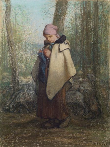 Jean-François Millet painted this image of a shepherdess, a timeless figure, seemingly paused in her daily vigil. Here, the humble act of knitting takes center stage; it's a gesture laden with significance. The act of knitting evokes images of Penelope, patiently weaving and unweaving, a symbol of marital fidelity and expectation. The thread itself—a continuous, unbroken line—speaks to the enduring nature of time, memory, and tradition. Consider the Fates, ancient deities who spun, measured, and cut the thread of life. Knitting, in this context, is not merely a domestic chore but a profound engagement with the fabric of existence. The shepherdess, like these mythical figures, shapes her world, stitch by stitch. The emotional weight of this image lies in its quiet contemplation. We see not grand action but the silent strength of a woman intertwined with the very essence of life's continuity. It’s a potent reminder of how symbols resurface, evolving, and taking on new meanings across time.