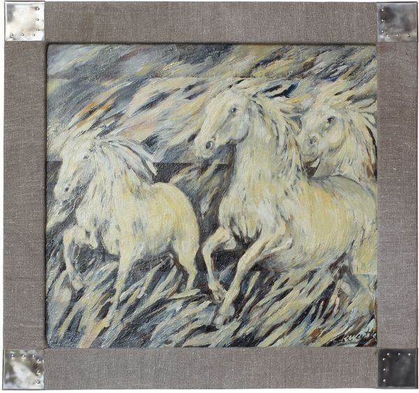 Małgorzata Serwatka's 'Horses' pulses with primal energy. The horse, a potent symbol, has galloped through human consciousness since antiquity. In ancient Greece, it was linked to Poseidon, god of the sea, embodying untamed power. Here, the horses, rendered with vibrant strokes, evoke both freedom and raw instinct, a dichotomy that has fascinated us for millennia. Consider the equestrian statues of Roman emperors – symbols of control and dominance. Yet, in Paleolithic cave paintings, horses represent a communion with nature, a reverence for the animal spirit. This painting seems to tap into both, the energy and the primal connection. The horse embodies our conflicting desires: to control and to be free, to dominate and to harmonize. It’s a dynamic tension, a recurring motif in the vast tapestry of human expression.