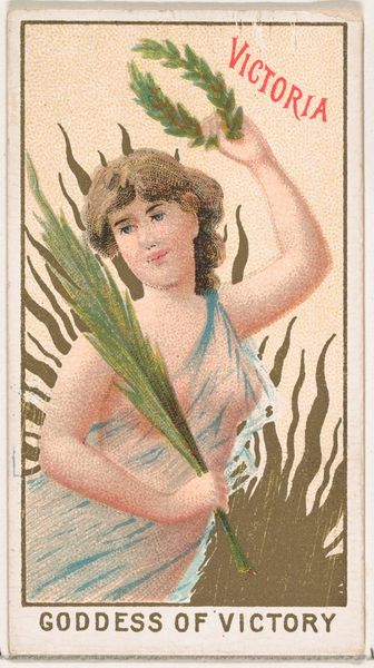 This chromolithograph of Pax, Goddess of Peace, was printed by Wm. S. Kimball & Co. as part of a series, likely in the late 19th century. Chromolithography was a revolutionary printing technique, which allowed for the mass production of color images for the first time. The process involved using multiple limestone blocks, each inked with a different color, and then printed in succession to create a complete image. Look closely, and you can see the build-up of layers. This particular print, originally a trade card, is a testament to the industrialization of image-making during this period. Far from the hand-painted works of previous generations, it was designed to be distributed widely and cheaply, a visual advertisement that equated the company's brand with classical ideals. Consider the labor involved in the production of these cards, and their role in a burgeoning consumer culture. It encourages us to think critically about the relationship between art, commerce, and the changing landscape of work in the industrial age.