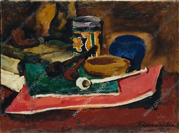 Editor: Here we have Henri Matisse's "Fruit and Coffee-Pot," painted in 1898. It's an oil painting, and I’m struck by how the objects seem to melt into the background; it almost flattens the whole picture plane. What are your thoughts on the formal qualities of this piece? Curator: It is quite intriguing, isn’t it? Notice how Matisse employs visible brushstrokes, foregoing a smooth, blended surface. Consider how these assertive marks don't just describe form; they construct it. Look closely at the tabletop – is it truly level, or is its tilt contributing to a disruption of conventional perspective? Editor: It's definitely not level! So, you’re saying that the distorted perspective and brushwork are deliberate choices to challenge traditional representation? Curator: Precisely. Consider the coffee pot itself. Matisse deconstructs the familiar shape with color. Light isn’t simply highlighting its form but is almost an object in itself. Ask yourself, does this emphasis on color and line detract from or enhance our understanding of "coffee potness"? Editor: I see your point. By breaking down the expected form, he forces us to see the painting as an arrangement of shapes and colours, rather than just a still life. I was so focused on what was *in* the painting. Curator: Indeed. It moves beyond mere representation. Did anything else stand out to you? Editor: Well, I hadn’t really noticed before how the fruit seems almost secondary, like mere afterthoughts amongst the textures. I am left considering line and the relationships of light across form above anything. Curator: Then Matisse has succeeded. Through his considered composition and visible brushstrokes, Matisse moves toward a flattened picture plane, emphasizing surface and the act of painting itself over realistic illusion. Editor: This close formal analysis has given me a completely different view on what Matisse might have intended with the artwork. I had overlooked its deeper meaning when just approaching it for face value. Curator: I, as well, found the exercise very rewarding, a fine challenge against some established understandings.