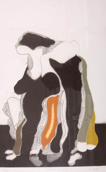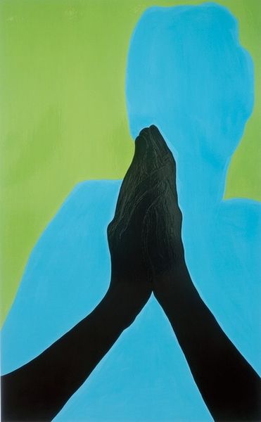 Curator: This is Gary Hume's "Vicious" from 1994, executed with household gloss paint on aluminum. Its presence is quite striking. What's your first take? Editor: It feels...uneasy. Like a dream where familiar things are just slightly off. That beige figure surrounded by these almost cartoonish flowers...it’s unnerving. Like a silent scream in a garden. Curator: I find it compelling how Hume elevates everyday materials to high art. Gloss paint, typically used for domestic interiors, becomes the medium for exploring complex figuration. There's a democratization of the art object at play. Editor: That's fascinating, but for me, the materials heighten the disquiet. The slickness of the gloss paint flattens everything, making the flowers feel artificial and the figure strangely inhuman. It reminds me of old enamel signs. Curator: Right. Consider the labor involved in achieving such flatness. Each layer, each carefully delineated form, speaks to a conscious control over the material, challenging notions of gestural abstraction. And this interplay with pop art too, that I feel too, challenges the heroic stance often associated with painting. Editor: Heroic? I see vulnerability. The figure's lack of detail turns it into a void, a space for projection. And that sickly sweet floral background…it feels suffocating, a false paradise. Makes you think of the hidden anxieties beneath polished surfaces. I think I feel the title coming alive for me. Curator: Precisely! Hume confronts us with the contradictions inherent in beauty and representation. The repetitive floral motif, the industrial sheen of the paint…it’s about critiquing the consumable image, about revealing the artifice behind the facade. Editor: Yes, the "viciousness" isn't an overt aggression, but more like the insidious creep of anxiety, disguised in a seemingly innocuous surface. The way the flowers trap the faceless figure, leaving us unsettled. Curator: An excellent interpretation. I feel you got to the essence. The means of its construction mirror the disquiet we experience as viewers. Editor: That uneasy feeling definitely lingers, which, I guess, is what makes it stay with me. Something stuck, in the glossy flatness of it all.