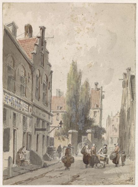 Adrianus Eversen made this watercolor of the Ronde Lutherse Kerk and houses in Amsterdam sometime in the 19th century. It’s a delicate, subdued rendering, made using a traditional medium – paint applied to paper. The effect is to capture not only the architectural forms of the buildings, but also something of the atmosphere of the city. Look closely, and you'll notice the material qualities of the watercolor. It's translucent, allowing the white of the paper to shine through, creating a sense of light and air. The washes of color blend softly, giving the scene a hazy, dreamlike quality. Eversen's technique is masterful, using subtle gradations of tone to suggest depth and shadow. The use of watercolor was significant, allowing artists to capture fleeting moments and everyday scenes with spontaneity and ease. In this image, the combination of medium and subject matter invites us to reflect on the social fabric of 19th-century Amsterdam. It reminds us that art is not just about grand gestures, but also about capturing the quiet beauty of the world around us.