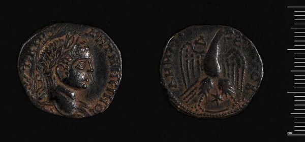 Curator: Here we have an anonymous follis, housed at the Harvard Art Museums. The humble weight is listed at 11.8 grams. Editor: Immediately, I'm struck by how worn the imagery is, yet somehow still communicative. Like a whispered secret, almost. Curator: Absolutely. These coins acted as visual touchstones, circulating images of rulers and religious figures, solidifying power through repetition and recognition. Editor: The halo really pops despite the wear and tear. It's interesting how such a simple circle can carry so much spiritual weight. Curator: The halo is a powerful symbol of divine grace, adapted in various cultures throughout history. It represents enlightenment, sanctity, and the spiritual aura surrounding a figure. Editor: It really makes you think about all the hands this little coin has passed through, all the stories it could tell... Curator: Indeed. A small object, but a powerful window into the past. Editor: It's a reminder that even the smallest things can carry immense cultural significance.
