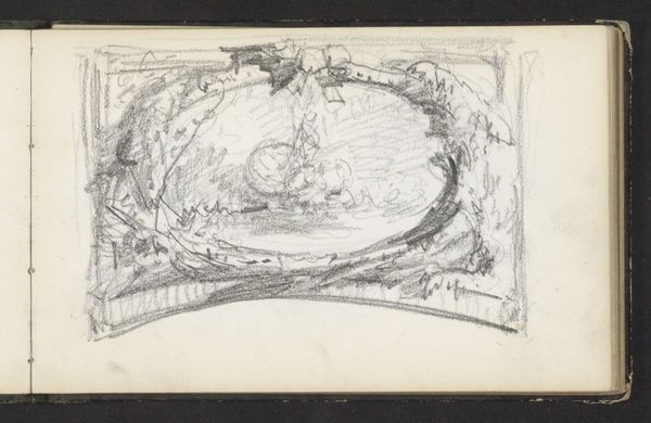 This page of sketches was made by Maria Vos in the 19th century, using graphite on paper. While graphite and paper are traditional art materials, what’s interesting here is the way Vos has used them. This is not a finished work, but rather a glimpse into her creative process. The quickly rendered lines show us a study of ornamental objects and a bird, capturing their forms and textures with varying degrees of detail. You can almost feel the artist’s hand moving across the page, as she builds up the image with layers of shading. Vos was clearly interested in the interplay between natural and artificial forms – the dove versus the elaborate curves of the bowls, the rough and ready marks of her pencil versus the refined objects she depicts. This reminds us that drawing itself is a form of making, a skilled practice that has its own history.
