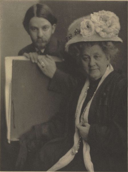 Curator: This photograph, titled "Social Revolution (?): United States. New York. Mt. Lebanon. Shaker Communities: Shaker Communities, United States: I. Sister Catherine Allen and Sister Martha Burger in reception room," was taken by James E. West. Editor: The starkness is striking. The composition, dominated by verticals and right angles, imbues the scene with a sense of order, almost severity. Curator: Indeed. Shaker communities, particularly their emphasis on equality and communal living, were radical experiments. The photo captures Sisters Allen and Burger, likely leaders within their community, in a moment of quiet formality. Editor: The subtle gradations of light and shadow are also remarkable. The way it plays across the plain dresses and the unadorned furniture creates an almost palpable stillness. Curator: Their commitment to celibacy and separation from the outside world further challenged conventional norms. This image becomes a powerful document, reflecting an alternative social structure. Editor: Agreed. Considering the semiotic weight of these objects and subjects, this image asks us to consider the simplicity and deliberate construction of every element. Curator: Ultimately, it presents a glimpse into a lived social revolution, where everyday life was imbued with the principles of utopian thought. Editor: Well, this photograph really asks us to contemplate both the quietude and the revolutionary spirit inherent in such a structured existence.