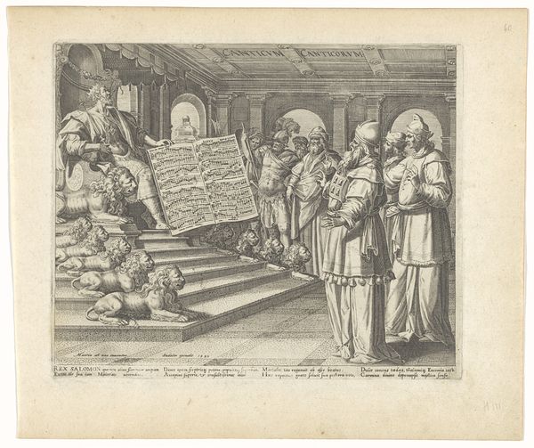 Curator: Let’s have a look at ‘Christ Healing the Blind Man,’ an engraving crafted around 1585 by Wierix. It's part of the Rijksmuseum collection. Editor: It’s remarkable. All that drama and emotion, meticulously rendered with fine lines. The architecture has this decaying grandeur that I find really affecting. Curator: Absolutely. Wierix was a master of conveying complex theological concepts. The gesture of Christ towards the man's eyes—it’s the fulcrum of the entire scene. The composition leads your eye directly to that pivotal interaction, where the seen and unseen intersect. Note the way light emanates from Christ's face and illuminates the blind man, highlighting themes of spiritual awakening and divine intervention. Editor: And the social context—prints like these were incredibly important for disseminating religious ideas. Engraving, though laborious, allowed for mass production, and the image, reproduced and shared, became a kind of currency of faith, reinforcing communal belief. Look at the architecture, too: the print emphasizes material presence, yet its very breakdown highlights the fleeting nature of worldly things, contrasting it against the timeless act of divine intervention. Curator: Exactly. Consider, also, that blindnes in this period wasn't only about the physical condition but it can suggest that the spiritually ignorant now "see the light of the lord", so the print suggests to viewers a way of salvation to reach enlightenment and escape darkness. Editor: So even this small-scale work required skilled labor to make that symbolic impact so strong across various contexts and beholders! Curator: True, and it brings forth timeless, enduring, universal feelings in humankind. Editor: Definitely. Considering its materiality allows us to reflect upon larger themes of spirituality and hope, a reminder of humanity, regardless of belief.