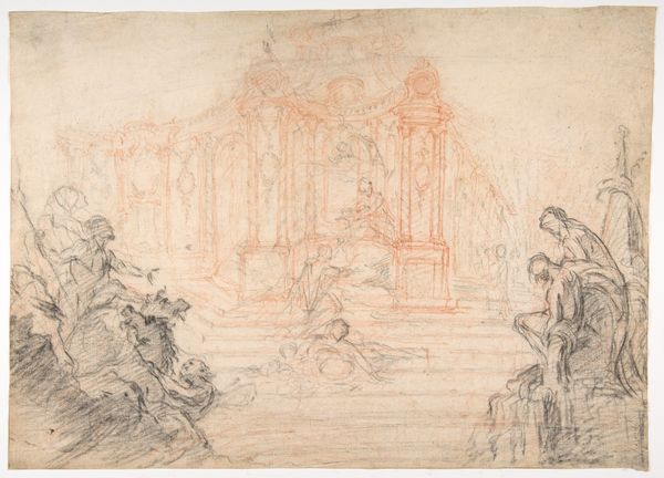 John Flaxman conceived this sketch for the Simcoe Monument at the Exeter Cathedral in pencil. The solemn figures poised at each side immediately command our attention. To our cultural memory, they echo the classical tradition of funerary art where figures represent mourning, and the virtues of the deceased. We see the motif of the grieving figure throughout antiquity, from ancient Greek stelae to Roman sarcophagi. The act of mourning, a profound expression of human emotion, becomes a powerful symbol passed through time, representing loss and remembrance. Consider, too, how such gestures of grief have been adapted and reinterpreted through the Renaissance. The emotional weight carried by these figures taps into a collective, subconscious understanding of mortality, loss, and the enduring power of memory. These symbols offer us a non-linear, cyclical progression, resurfacing and evolving across historical contexts to reveal the emotional and psychological depths of human experience.