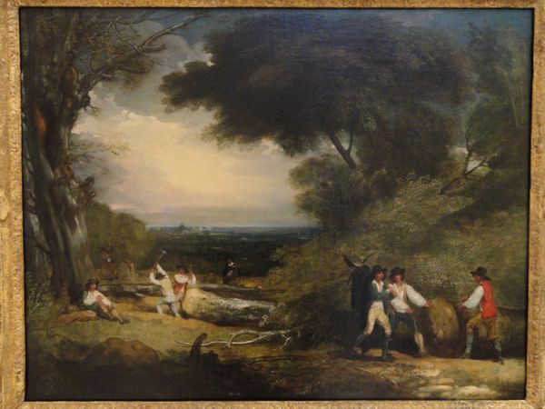 Curator: This is Sir David Wilkie's "A Picnic," held within the Tate Collections. The support measures 184 by 260mm. Editor: It feels like a fleeting glimpse of leisure, but something about the palette feels melancholic. Curator: Wilkie lived from 1785 to 1841. He often depicted scenes of everyday life and, given the context of the time, picnics were carefully orchestrated social events, reinforcing class boundaries. Editor: Absolutely, who gets to relax and in what context is key here. Look how women are grouped in the image, the whole concept of leisure and who gets to partake is historically unequal. Curator: The loose brushwork gives it a sense of immediacy, almost like a captured moment, yet these moments were rarely accessible to all. Editor: Precisely. It's beautiful, but it makes me think about the unseen labor that sustains these 'carefree' moments. Curator: Agreed. It's a reminder that art can be both aesthetically pleasing and a potent lens for social critique. Editor: Yes, seeing the past through the present, and hopefully creating a more equitable future.