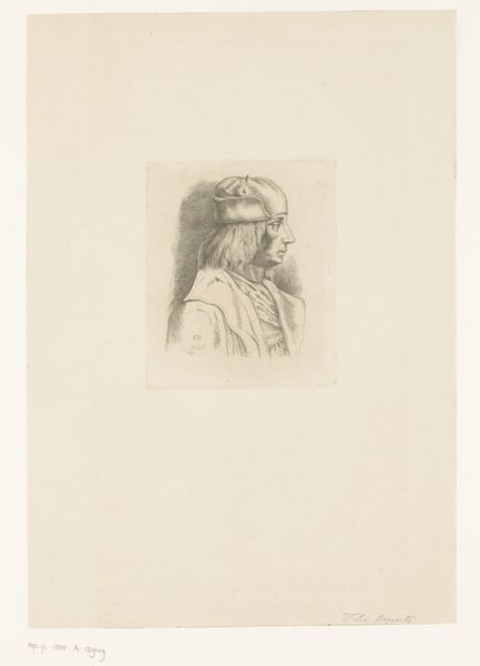 Editor: This is Mary Hector Rupert Cantineau's "Portret van een onbekende oude vrouw, en profil" from 1896. It’s a detailed etching and print of an older woman in profile. There’s a starkness to it, almost… a kind of quiet defiance in her expression. What do you see in this piece, particularly considering its historical context? Curator: The woman’s gaze, though averted, speaks volumes. In 1896, a portrait like this could be seen as challenging the idealised portrayals of women common in art. Cantineau, by focusing on the lived experience etched on this woman's face, engages with the politics of representation, challenging the dominant narratives of beauty and ageing. Editor: So it's a commentary on the visibility, or rather, the invisibility of older women? Curator: Precisely. Consider the societal pressures placed on women, particularly regarding appearance and age. Cantineau's decision to depict an "unknown" older woman, emphasizing the wrinkles and contours that come with age, is a radical act. It asks us to consider who is deemed worthy of representation and whose stories are valued. How does the technique – the etching, the print – contribute to this effect, do you think? Editor: The etching definitely gives it a sense of texture, of realness…it almost feels like she’s carving out a space for this woman to be seen. I hadn't thought of it as activism, but now it makes sense! Curator: It's a subtle but powerful form of activism. It's not shouting, but it is demanding a re-evaluation of our cultural biases. These choices subtly counteract ageism by forcing the viewer to acknowledge the presence and worth of an often-overlooked demographic. Editor: I'm really struck by the thought that portraiture isn't just capturing a likeness, but it is also making a statement. I'll definitely look at portraits differently from now on! Curator: Absolutely. The piece reframes our understanding of representation, reminding us that art can be a potent tool for social commentary.