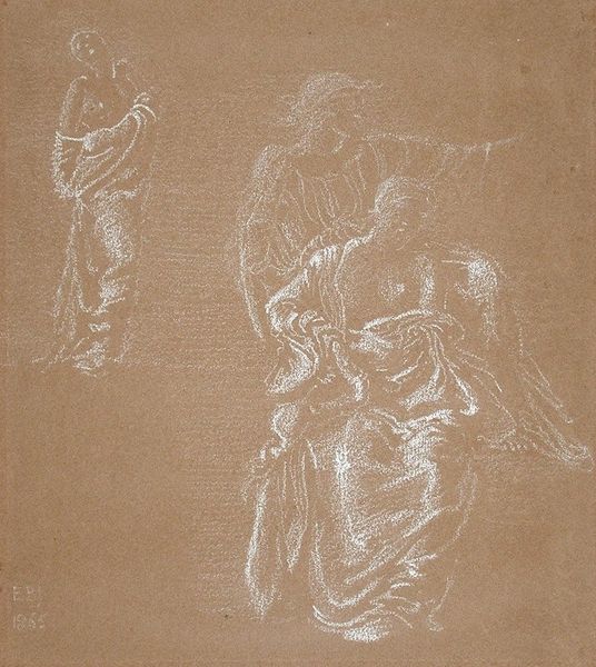 Edward Burne-Jones captured this seated couple, embracing, with white chalk on brown paper. The figures, draped in classical robes, echo the poses of ancient sculptures, calling to mind a timeless vision of love and intimacy. Consider the embrace itself, a motif stretching back through art history. It reappears across centuries, from medieval depictions of lovers to modern expressions of familial affection. But the embrace here is more than a physical connection; it is a symbol laden with cultural memory. Think of the medieval tradition of the "liebestod," or "love death," in which lovers find ultimate union in death. The manner in which the couple are seated, intertwined, evokes a sense of melancholy and introspection. Such positioning invites us to consider the deeper, perhaps subconscious, reasons for such closeness. It is a tender image, resonating with our primal need for connection and comfort. It invites the viewer into a space of shared humanity, showing how the symbol of the embrace continues to speak to the heart across the ages.