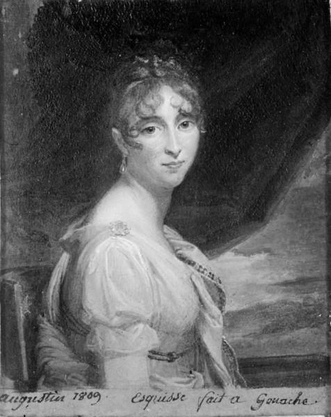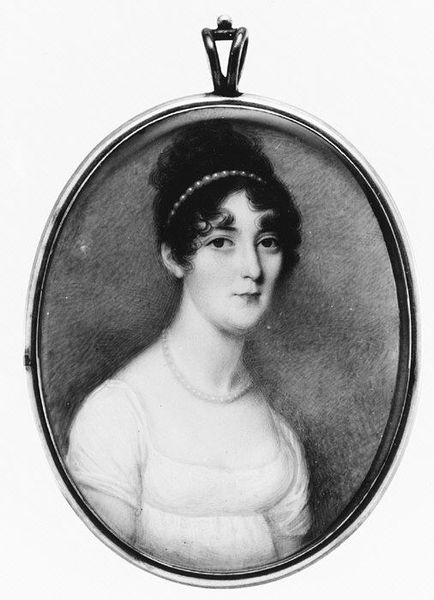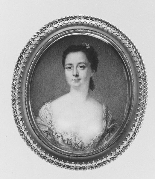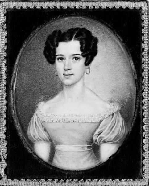 Curator: "Portrait of a Woman", made between 1825 and 1835 by Mikail Ivanovich Terebenev, is a striking example of Romantic-era portraiture. I am really drawn to how incredibly detailed the clothing and jewelry are in the miniature. What captures your attention first about this work? Editor: Well, I immediately noticed the size and detail. It’s quite a small painting but seems so luxurious. How did the artist manage to include so much intricate detail in such a small piece? Curator: That's the question! Think about the conditions under which it was made, the materials accessible to the artist. This would have involved meticulous hand-grinding of pigments, perhaps using rare minerals to achieve such nuanced tones even in a black and white portrait. Then consider the brushstrokes - likely using brushes with only a few hairs! Each tiny, deliberate action emphasizes the luxury of portraiture as a commodity for the wealthy, produced by skilled but often unsung artisan labor. Editor: That’s fascinating. So, the value wasn’t just in the likeness but also in the sheer amount of work put into creating the image? Curator: Precisely. Think about the social statement conveyed through commissioning such a portrait: it wasn't simply about memorializing a likeness; it signified the wealth and taste of the sitter. Can you imagine the resources consumed and the artist's labor just for this miniature? It becomes a powerful indicator of social hierarchy. Editor: I never thought about it that way before. The effort and resources now give a different layer to how I view the woman portrayed. Thanks so much for your insight! Curator: And I found a new appreciation for the materials employed and the labour necessary for these pieces of art, highlighting how materiality conveys societal status in Romantic portraiture.