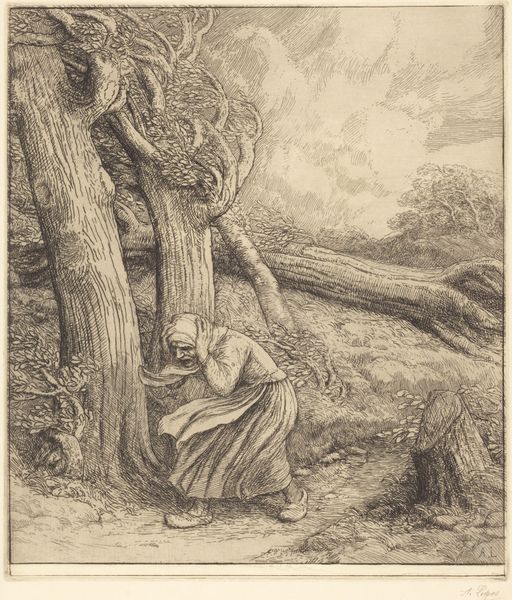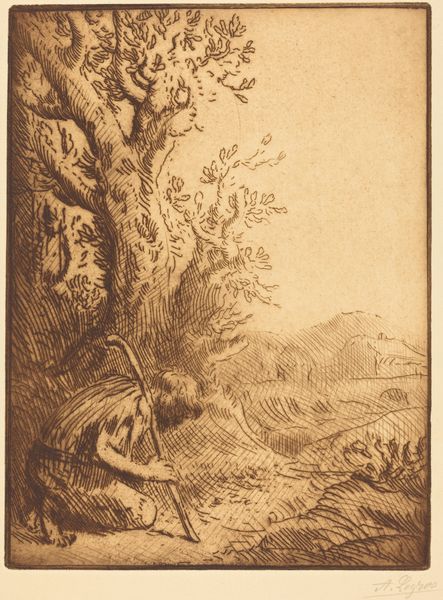 Alphonse Legros made this etching, “Little Beggar,” sometime in the mid-19th century. It depicts a young man seated by the side of a road, perhaps an itinerant farmhand. The etching needle captures a sense of his dejection and the barrenness of his prospects. Legros came of age during a period of rapid social and economic change in France, and his work frequently reflects the plight of the poor and working classes. We can see the influence of the Barbizon School of landscape painting in the way Legros uses light and shadow to create a sense of atmosphere and depth. The rural setting and the sympathetic depiction of the beggar also connect to the Realist movement in French art, which sought to portray the lives of ordinary people with unflinching honesty. By studying the prints and drawings that were popular at the time, and by researching the social and economic conditions of 19th-century France, we can better understand the meaning and significance of this etching. “Little Beggar” reminds us that art is always a product of its time.