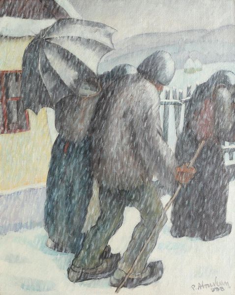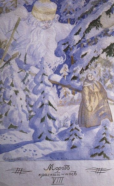 Boris Kustodiev created this watercolor painting titled “Meeting on the corner”. The eye is immediately drawn to the juxtaposition of stillness and dynamic interaction. On the right side of the painting, a fur-clad woman dominates the frame, her presence bold against the snowy backdrop. Notice how the soft, muted palette of the winter scene contrasts sharply with the vibrant, almost hallucinatory display of goods on the shopfront to the left. Kustodiev masterfully plays with perspective, compressing the space to heighten the sense of immediacy and intimacy. The man peeking from behind the door adds a layer of intrigue, his gaze connecting us to the scene's narrative. The visual language of this painting challenges fixed notions of reality, inviting us to interpret the meeting on the corner. The formal elements of Kustodiev’s piece—the composition, the use of color, and the deliberate flattening of space—serve not only aesthetic purposes but also reflect a broader cultural and philosophical engagement with the complexities of human experience.