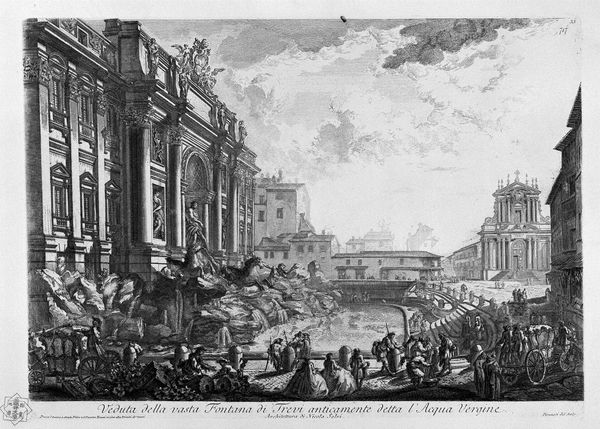 This print of the Trevi Fountain was made by Giovanni Battista Piranesi in the 1700s, using etching and engraving. These processes involve coating a metal plate with wax, then scratching into it with a sharp tool to expose the metal, which is then bitten by acid. This creates the lines that hold ink, and transfer the image to paper. The magic of Piranesi lies in his capacity to evoke material grandeur with simple means. He suggests the monumental scale of the fountain through the meticulous labor of mark-making. Look closely, and you’ll see how he creates a full tonal range, from bright highlights to deep shadows, using only the varying density of lines. This would have required great skill and patience. Piranesi’s prints like this one were made for wide circulation. The print medium was critical to how the architecture of the past was consumed by later generations, including how it was regarded. His work collapses the distinction between the fine arts and something closer to the graphic design of his era. So the next time you visit the Trevi Fountain, consider also Piranesi’s labor of love, which has done so much to shape our view of this iconic landmark.