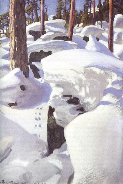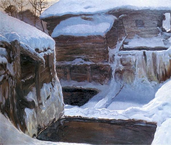 Neil Welliver made this painting, "Study for Aqua Spring", with what looks like oil paint on canvas. Look at those marks! Each dab of paint feels deliberate, like Welliver is building up the image, brick by brick. It's all about the process, a kind of slow construction of a scene. The colors are cool, mostly whites and blues, with some darker greens and browns peeking through the snow. I love how the texture of the paint mimics the texture of the snow and ice. You can almost feel the cold air. Notice that large boulder near the top, covered in snow. The way Welliver painted it, with all those little strokes, gives it weight and presence. It feels solid and real. It reminds me a little of Fairfield Porter, another painter who loved to capture the everyday beauty of the natural world. Art is an ongoing conversation across time, an exchange of ideas. And it’s always open to interpretation.