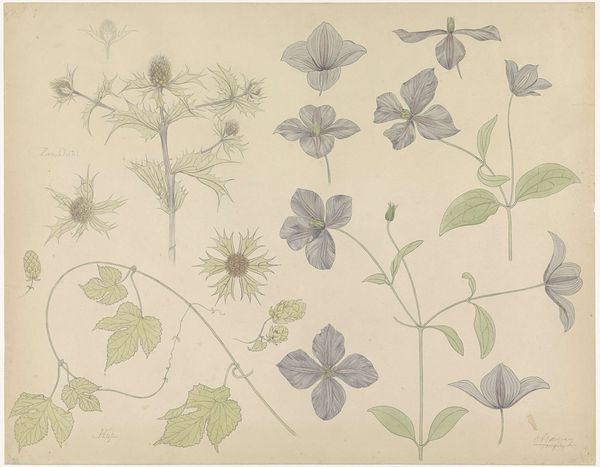 Curator: Here we have Johann Christian August Birnbaum’s "Study of Three Flowers," a watercolor drawing dating to 1781, currently residing here at the Metropolitan Museum of Art. Editor: Mmm, melancholy botanical illustration. It’s all very muted, almost ghostly, as if pressed between the pages of some ancient herbal. Gives me a slightly forlorn feeling, which, I suppose, fits with its time. Curator: Indeed. Birnbaum, working at the tail end of the 18th century, would have been well aware of the growing interest in botany and natural history that defined the era. Remember that the documentation of flora and fauna played a critical role in colonial projects and emerging scientific discourse. Editor: Oh, I’m immediately picturing the colonial context. So it wasn’t just about pretty pictures then; it was taxonomy playing its part. Knowing it might’ve contributed to how someone cataloged nature certainly influences how it feels. I wonder how much direct exposure he had, handling live specimens? Curator: We don’t know definitively in Birnbaum’s case, though the scientific aspirations are palpable through his close observational skill. Artists were, after all, integral to disseminating accurate botanical knowledge, filling in what words alone couldn't do. There’s a visual, tangible element crucial for educational materials and references in research. Editor: Which perhaps also explains the almost detached treatment—a world away from the almost hysterical enthusiasm that explodes later on, say, with someone like van Gogh. Each blossom rendered with what feels to me like exacting coolness. Does this relate to a cultural tension between the Enlightenment versus burgeoning Romanticism in his era? Curator: Precisely. Birnbaum's technical precision aligns with the Enlightenment's emphasis on empirical observation, while the artwork's delicacy and isolated presentation resonate with nascent Romantic sensibilities which turned to the evocative potential of natural settings. How does understanding this push-pull affect how we interact with such work? Editor: Oh, profoundly. Thinking that he must have understood a changing relationship with nature that might not only be resources to utilize gives new life into what otherwise seems detached and distant. It also forces reflection on the complex intersection between aesthetic rendering and imperial knowledge, a perspective worth considering. Curator: It adds another dimension, layering meaning. It challenges our reading beyond surface-level beauty, compelling inquiry into the societal implications underscoring botanical artistry of this epoch. Editor: Precisely! Birnbaum probably did not imagine that he will provide as much intellectual and contextual fodder as beauty through this. And here we are, still unraveling what he sewed into those flower studies so carefully centuries ago.