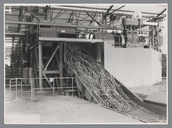 This photograph, "Generatoren uit de USA," made by the United States Information Service captures an outdoor industrial scene. The grayscale palette emphasizes texture and form, turning the gritty subject into something visually compelling. There’s a raw quality to the image; the subjects stand as a testament to labor and industry. My eye keeps getting drawn to the crane in the background, a symbol of power. It's not about hiding the process but laying it bare, just like the bare wood and metal on display. This photograph shares the spirit of artists like Bernd and Hilla Becher, who documented industrial structures with a similar objective eye. It reminds us that art isn't always about beauty but about seeing and understanding the world around us.