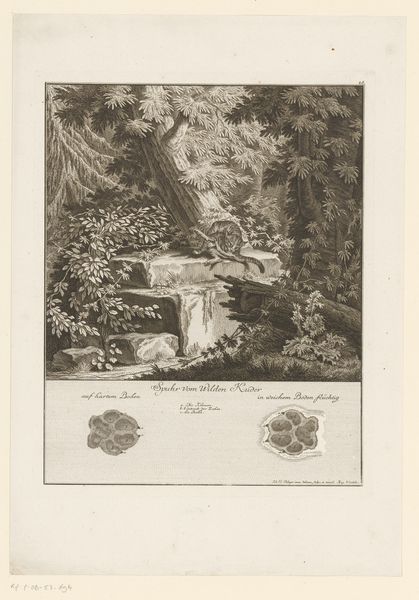 Curator: So, what are your initial thoughts looking at this etching? For me, the sheer meticulous detail feels like a love letter to the forest. Editor: My first impression? Methodical. Cool, clinical even. Not exactly brimming with forest love, though I grant you, it's undeniably detailed. All that stark realism. This feels like less of a bucolic scene, and more like… evidence. Curator: Perhaps that's part of its peculiar charm! This is "Das met spoor", which translates roughly to "The badger with its tracks," an engraving dating back to 1751 by Johann Elias Ridinger. He’s known for these incredibly precise depictions of animals in their habitats. Look at the texture of the trees and that burrow! I feel I could crawl right in there and hide with him! Editor: Precision, certainly. But what kind of precision? A highly gendered and colonial impulse permeates these images. "Mapping" and ordering the "natural" world have long served to dispossess and dehumanize. Do we see an ecosystem here, or a specimen being classified? A badger going about its life, or one foot-printed, categorized, knowable? Curator: That's a rather… intense reading, isn't it? It seems Ridinger had such genuine admiration for his subject! This isn't some sterile scientific study. It’s almost reverential, seeing the badger as both an individual and as part of a balanced world. You can tell that this particular engraver thought of art in similar way a botanist thinks about flora and fauna. The style, in line with its time, blends history painting, landscape and Baroque elements, don't you think? It's an almost obsessive rendition that to me echoes the magic of the old growth forests. Editor: I acknowledge that. But that “magic”, that idealized and somewhat naïve "balance," often ignores the messy reality of exploitation, human and animal. Where are the other voices, the ones affected by this presumed harmony? This feels like conservation-as-domination dressed up in pretty strokes of ink. Curator: Well, perhaps our badger here would see things differently, given half a chance! Maybe, from his perspective, he thinks we have the whole thing wrong, obsessing over lines on paper while he’s got real worms to unearth. What do you reckon? Editor: Maybe. Or maybe that badger is smarter than we give him credit for and recognizes he's being neatly framed within a system he can't escape. Food for thought. Curator: Indeed. As is this fascinating piece altogether. Thanks for digging into the track with me!