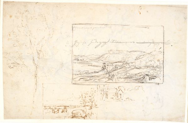 This pencil drawing, "Landschap ten westen van Sumedang, Priangan, West-Java," was made by Adrianus Johannes Bik. The sketch offers a window into the Dutch colonial presence in West Java. Bik's depiction of the landscape, with its orderly rows of crops and clearly labeled topographical features, speaks to the colonial project of mapping and understanding the territory for economic and administrative control. The inclusion of local dwellings amidst the vast landscape highlights the intersection of indigenous life and colonial power. It subtly underscores the imposition of a foreign system onto the existing social fabric. The Rijksmuseum, as the artwork's current location, plays a role, too. Its collection and display of such works inevitably shapes our understanding of this complex history. Accessing archives and colonial records could shed further light on the dynamics of the colonial period, allowing for a more critical interpretation of Bik's landscape.