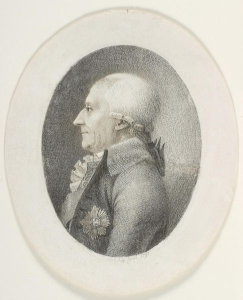 Editor: This is Jean-\u00c9tienne Liotard's *Portret van Joseph II van Oostenrijk*, made with pastel in 1778. The colors are really subtle, almost faded, giving it an ethereal, elegant feeling. How do you read this piece? Curator: From a formal perspective, the image operates through a fascinating juxtaposition of textures and delicate applications of pastel. Notice how Liotard uses distinct strokes to delineate fabric versus skin, the wig almost floating off the background in contrast with the defined contours of the face. How does this deliberate distribution of detail and blur shape your understanding of Joseph II? Editor: It makes him feel both present and distant, powerful but also a little fragile. The soft colors maybe contribute to that? Curator: Precisely. The palette is not merely decorative. The muted blues and grays create a tonal unity, allowing the textures to emerge as the primary conveyors of meaning. The interplay of light and shadow models the contours of Joseph's face, subtly revealing aspects of his character – perhaps determination tempered with introspection. Editor: That's interesting! I was so focused on the subject, I hadn't really thought about the interplay of techniques and how they inform the mood. Curator: By isolating elements, such as line, color, and texture, we can explore how their formal arrangement affects the overall meaning and evokes feelings beyond the mere representation of a figure. Editor: I can see that, and I'm struck how much I overlooked by jumping straight to thinking about the historical context. Thanks for opening my eyes to the importance of pure visual analysis. Curator: And in turn, your response demonstrates the continued vitality and multifaceted ways in which these artistic artifacts can spark dialogue and introspection!