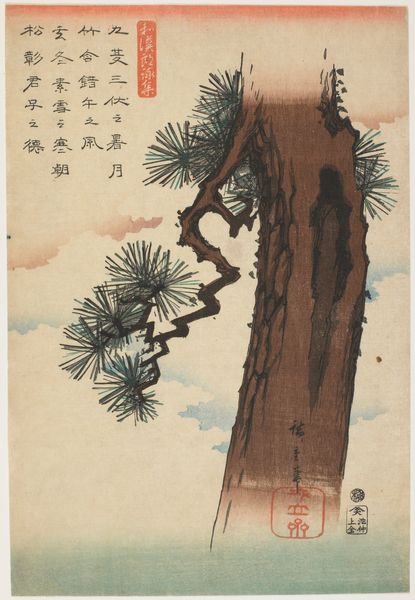 Utagawa Hiroshige created this woodblock print, ‘Hawk on Pine Tree,’ capturing a moment rich with symbolic weight. The hawk, poised on the pine, immediately evokes strength, keen vision, and an untamed spirit. A large red sun rises behind the hawk. Throughout time, the image of the hawk has resonated across cultures, from ancient Egyptian falcon-headed gods to the heraldic symbols of European nobility. In Japan, the hawk symbolizes martial prowess and courage, often associated with the samurai class. Here, the pine tree is an emblem of longevity and steadfastness, its evergreen nature defying the changing seasons. The sun, a universal symbol of life and renewal, casts a warm glow, infusing the scene with vitality. The hawk’s piercing gaze engages us. It awakens our primal instincts, and the desire for freedom and power. Consider the cyclical nature of these symbols; they resurface, evolve, and take on new meanings, weaving a complex tapestry of human experience.