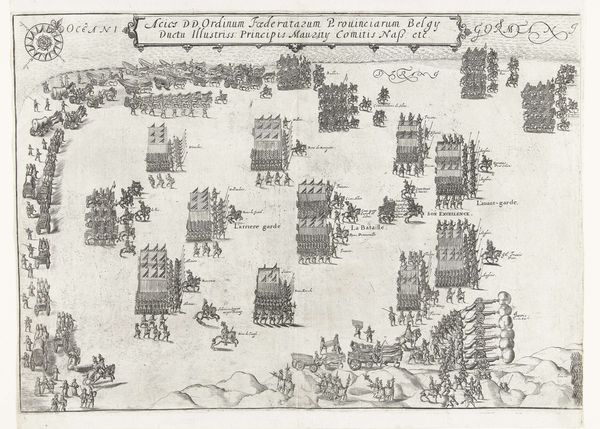 Curator: The first impression this gives me is almost architectural. Like a blueprint of power in motion. Editor: It's intricate, certainly. This engraving, "Entrance of the Archduke Ernest to Brussels, January 30, 1594," made sometime between 1594 and 1600, captures a moment of opulent display. I'm thinking specifically of how the materials themselves – the ink, the paper, the very act of printing – communicate as much about power as the subject matter. Curator: Oh, I feel that! I see a dance – not of individuals, but of symbols and institutions. Each building, each mounted soldier… they're all pieces in a grand chess game. The anonymous artist, cleverly showing us not just *what* happened but *how* it was staged for maximum impact, and I can’t help wonder if there is another hidden layer within that stage design, beyond what the Archduke imagined for himself. Editor: Absolutely. And the choice of engraving – think about the labor involved in creating those lines, the precision, the sheer number of impressions that could be made. This wasn't just about recording history; it was about disseminating it, reproducing the Archduke's image and authority on a mass scale. Consider it very early PR. Curator: True! And there’s a definite "manufactured" feel that doesn’t really invite us into the triumph but rather presents it from a distance. The overall sense of objectivity actually lends itself to almost a kind of dream landscape of historical staging, if you will. Almost theatre. Editor: Precisely. And it reminds us that the reality of this historical event was likely far messier, more complicated, involving workers, artisans, the sourcing of materials – all the unseen labor that made this "triumph" possible. It begs the question of the hidden networks of creation. Curator: It makes me think how power always depends on those hidden networks, those unseen efforts, to maintain its facade. Editor: So true. Examining those networks lets us reimagine history less as a series of grand events and more as an intricate web of human interactions, driven by tangible things. Curator: Beautiful! Next time I look at this, I'll be thinking about the web as much as the spider at its center. Editor: Exactly – seeing beyond the surface reveals so much more about how the world actually works, even in 16th-century Brussels.