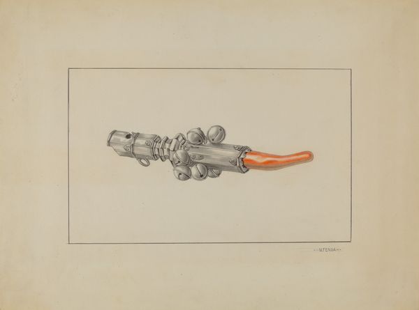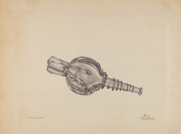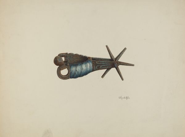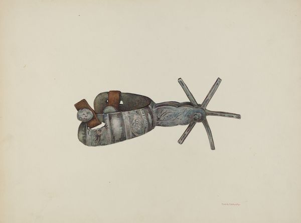 This drawing of a spur was made by Albert Pratt, though we don't know exactly when, and it's rendered with graphite and crayon on paper. It's interesting to look at the work here as process, a kind of loving study almost, because the spur itself is such a functional and robust object. The drawing is a study in textures, isn’t it? Look at the way Pratt captures the gleam of the metal, its cool surface almost palpable. There's a real sense of weight and presence. The spur's wheel, with its radiating points, is wonderfully done. You can almost hear the jingle-jangle of it in action. The drawing gives a clarity to the object; in its stillness it seems so full of latent energy. This piece reminds me of the work of Charles Sheeler, who also found beauty in the clean lines and forms of industrial objects. Pratt’s “Spur” invites us to consider the beauty in the everyday, the artistry embedded in even the most functional of objects.