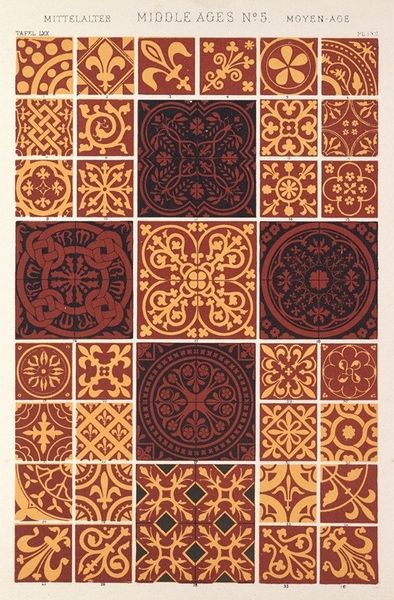 Curator: Here we have Owen Jones's "Greek No. 8," dating back to 1856. What are your first thoughts on it? Editor: The repetition and symmetry are quite calming. But something about the color palette and the somewhat rigid geometry feels a little...stiff. Curator: The piece offers us insight into 19th-century decorative arts. Owen Jones, a key figure in the Arts and Crafts movement, was deeply influenced by historical ornamentation. Here, he presents various geometric patterns drawn from Greek art. Editor: Indeed. Each individual pattern has its own visual logic, a self-contained system. Look at the interplay between positive and negative space in the meander motifs, for example. It's fascinating how they define each other. Curator: The color choices are crucial. Notice how Jones uses a limited palette of earth tones, reds, greens, and blues to structure these patterns. It suggests an effort to connect with a historical aesthetic—specifically, attempting to visually define "Greekness." But also how the availability and industrial production methods influenced aesthetic choices. Editor: So, Jones isn't just copying patterns; he's also offering his 19th-century interpretation of classical style through materiality and repetition? How his social context frames our current viewing. Curator: Precisely. The rigid structure could be seen as a reflection of the Victorian era's penchant for order. "Greek No. 8" sits at an interesting intersection—a blend of artistic interpretation, historical research, and Victorian values. Editor: The interplay of these patterns creates an overall feeling of both meticulousness and an aesthetic language from history. Curator: Indeed, a perfect intersection for cultural investigation through line, color and form.
