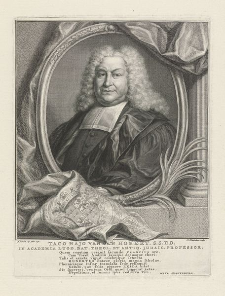 This is Jacob Houbraken’s portrait of Johannes Jacobus Vitriarius, rendered in the intricate medium of engraving. It is a print, made by incising lines into a metal plate, which is then inked and pressed onto paper. Notice the extraordinary detail, achieved through a network of fine lines and cross-hatching. These marks create tone and texture, bringing Vitriarius to life with remarkable presence. The engraver's skill lies in their ability to translate visual information into a language of lines. This was a laborious, highly skilled craft, situated within a complex system of production. Printmaking allowed for the mass dissemination of images, contributing to the growth of visual culture and, of course, solidifying Vitriarius’s public image. Consider the social context: Houbraken's expertise was essential to disseminating images and ideas in an era before photography. By appreciating the labor and skill involved in this process, we can see how craft and fine art were deeply intertwined, and how both were connected to broader networks of labor, politics, and consumption.