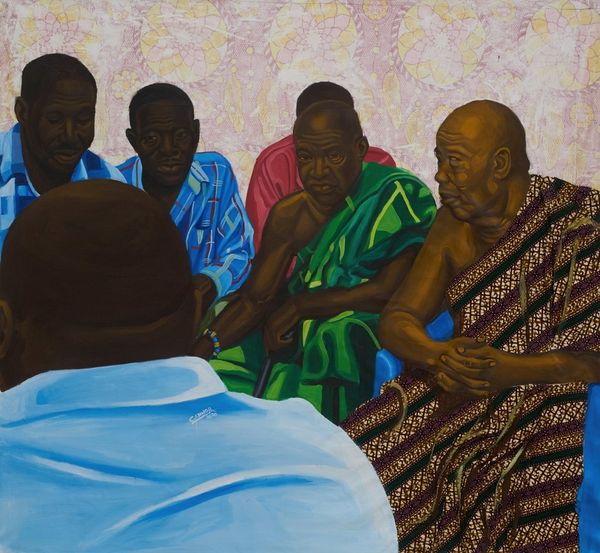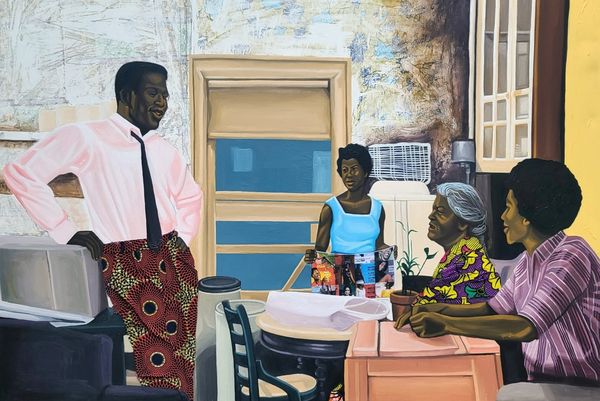 Cornelius Annor painted “After Church” using oils on canvas. It feels like a memory unfolding, a quiet domestic scene captured with a palette that’s both vivid and subdued. I’m drawn to the way Annor handles paint here. It’s smooth, almost creamy, creating a surface that invites you in. Look at the rug, how the pattern seems to vibrate with life, each detail rendered with care. The colours are deceptively simple – greens, blues, reds – but they’re layered and modulated, creating a sense of depth and atmosphere. The child's bright sweater, boldly striped in red and gold, adds warmth to the scene. It’s like a burst of energy amidst the calm of the afternoon. This piece reminds me a little of Lois Dodd, in its focus on the everyday and its quiet, contemplative mood. But Annor brings his own unique voice to the conversation, reminding us that art is always a dialogue, a conversation across time and space.
