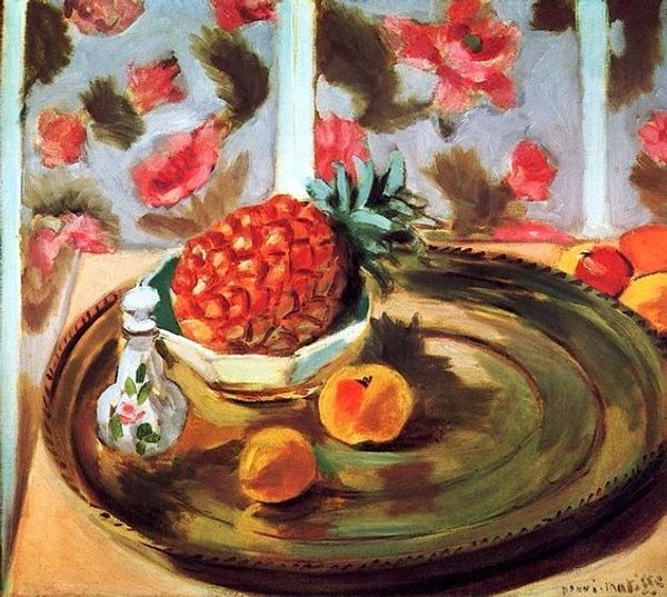 Editor: This is Eugene Lanceray's "Still Life. Shell and Apples" from 1917, created with oil paint. There's something almost domestic, yet also slightly unsettling about the combination of objects. What strikes you about it? Curator: The unsettling feeling might stem from the year it was painted – 1917, amidst immense social upheaval in Russia. While seemingly a simple still life, consider the symbolism. Apples, traditionally associated with temptation and knowledge, juxtaposed with a shell, often representing femininity and fragility. Editor: So, you're saying these everyday items might have a deeper meaning related to the artist's context? Curator: Precisely. Lanceray, coming from an artistic family with connections to the Russian aristocracy, likely experienced the anxieties of the revolution. Does this arrangement speak to a sense of the established order being disrupted, a vulnerability exposed? Notice the somewhat careless arrangement and how it might challenge traditional notions of a polished, bourgeois still life. How might the shell serve as a commentary on the displacement felt by many at the time? Editor: It's interesting how you frame it in terms of the social and political turmoil. I hadn't thought of the shell that way, but now I see a fragile beauty threatened by the changing world. Curator: Indeed. Considering these pieces not in isolation, but within their tumultuous historical moment allows for rich insights into the artist's possible anxieties and the broader societal tensions. This is not simply a display of objects; it's a silent narrative pregnant with the precarity of its time. Editor: I definitely see it differently now. It's more than just fruit and a shell; it's a coded message. Curator: Absolutely. It highlights how even seemingly apolitical subjects are laden with cultural meanings that resonate especially strongly during times of upheaval. Perhaps you'll view still lifes through a new lens now, understanding them as historical documents in disguise.