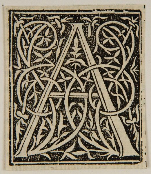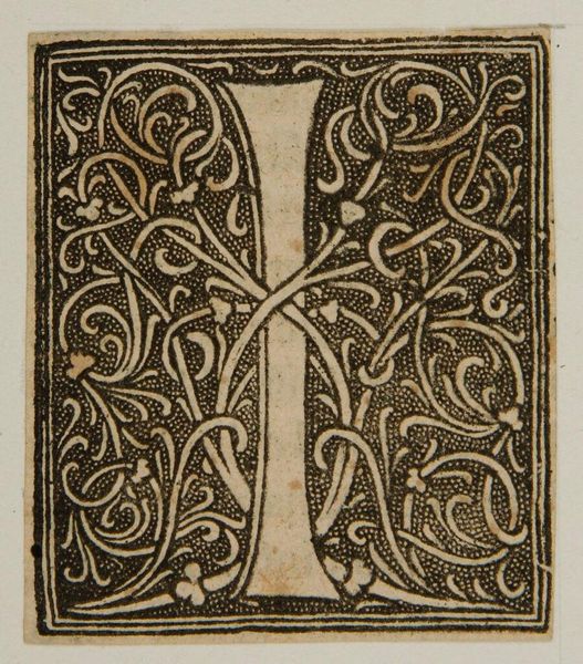 Curator: Here we have an intriguing piece, simply titled "Letter T," by an anonymous artist, housed here at the Harvard Art Museums. Editor: Wow, it's quite striking! The dense, swirling pattern is almost overwhelming, like a visual representation of information overload. Curator: Indeed. Consider the labor involved in creating this relief print—the careful carving away of material to produce such intricate detail. What does it suggest about craft, utility, and even the role of the artist? Editor: It makes me think about literacy, access to knowledge, and the power dynamics embedded in language. Who had access to these illuminated letters, and whose stories were being told? Curator: Excellent points. It serves as a reminder that even the smallest details can reveal larger social and historical narratives. Editor: Absolutely, it's sparked some fascinating questions about the politics of representation. Curator: It's an invitation to look closer, I think. Editor: I agree. A truly illuminating piece of print work.