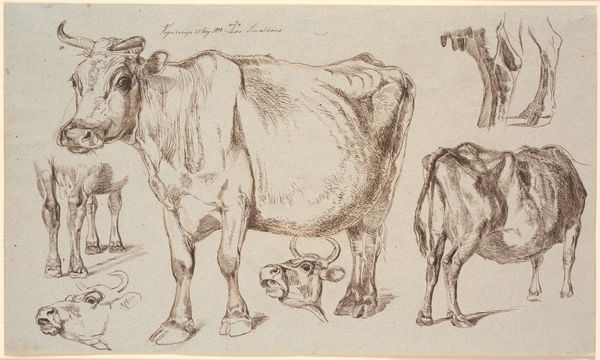 Johannes Tavenraat made these two studies of a cow with pen in ink on paper. Tavenraat lived and worked in the Netherlands during the 19th century, a time of burgeoning agricultural science and innovation. Here, we see the artist has made a fairly straightforward rendering. It is the kind of image that might be found in a scientific textbook, something that could be used as a study guide. In fact, Tavenraat was known for his animal paintings. While this piece does not necessarily critique the art institutions of its time, the style and subject matter is a testament to the rising status and importance of livestock in Dutch society. Historical research into Dutch agricultural practices, as well as the archives of art academies, could provide greater context. The meaning of art is always contingent on its social and institutional context.