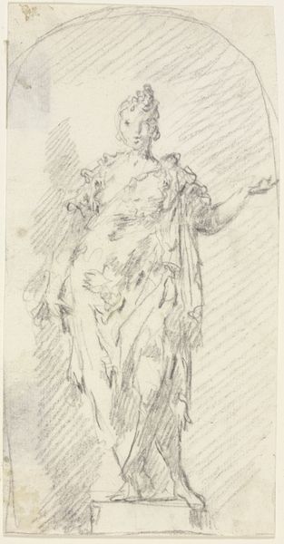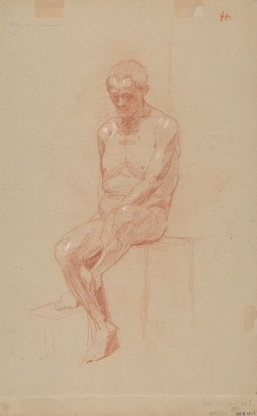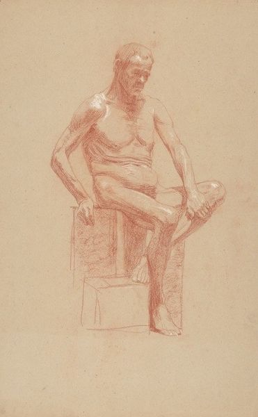 Curator: Let’s take a look at “Seated Bearded Man, Nude to the Waist,” a pencil and graphite drawing from around the 19th century, created by Isidore Pils. What strikes you first about it? Editor: The pose! He is so incredibly relaxed, almost nonchalant. It feels very intimate, as if we’ve stumbled upon him in a moment of private repose. Curator: Note the medium, though—the texture of the graphite on the paper. The grain creates a beautiful range of tone. It’s an academic study, a material exploration just as much as it is an exercise in rendering the human form. Look how the artist explores the draped fabric and tassels— Editor: Yet, there's something more profound at play, I think. Beards, historically, have carried so much symbolic weight, connoting wisdom, authority, masculinity... The figure is presented bare-chested but retains this emblem of power. What does that contrast suggest? Curator: It’s interesting you see "power." The nude, especially in academic art, was often a vehicle for social elevation. This artist engages directly with those tropes by choosing graphite. It can feel disposable, and I would argue, here suggests a mass reproducibility and consumption of bodies. It undermines that older conception, that claim of ‘power.’ Editor: But doesn’t that ease hint at an underlying power? He isn’t presenting for us. The direct, unwavering gaze, regardless of pose, confronts the viewer. What does that unflinching presentation of self communicate? Is it defiance, self-assurance, resignation? Curator: And defiance is shown here by Pils' deliberate exploitation of graphite and sketching. Mass reproducible portraits challenge conventional oil paintings by bringing images and themes into wider circulation. The materials were deliberately democratizing, and reflect wider societal tensions around industrial methods during that time. Editor: Right, but that reading overlooks a key aspect: timelessness. While Pils’ may have embraced more modest media, the man in the drawing becomes archetypal. He’s simultaneously present in the 19th century, yet reflective of classic historical themes. Curator: Pils challenges standard workshop models with that use of common materials. The work critiques academic norms that defined artistic creation as restricted and precious. Editor: Indeed. The visual cues serve not only an era’s representation, they connect us to a lineage of archetypal representation of strength and introspection that stretch back into time. Thank you for shedding some light on the tension that reveals. Curator: Absolutely! Focusing on production and medium reveals hidden political agendas of making art for specific social consumption, I believe. Thank you.