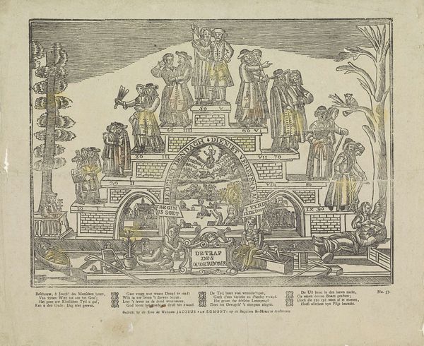 "De trap des ouderdoms," or "The Staircase of Old Age," was created by Erven de Weduwe Jacobus van Egmont, and is currently held in the Rijksmuseum. The print presents life as a series of stages, each represented by figures on a staircase, embodying a meditation on aging and mortality. The image is deeply embedded in the historical and cultural context of the Dutch Golden Age, a time marked by both prosperity and a heightened awareness of life's transience. Each step reveals a different phase of life, from youth to old age. The progression is steep, signifying the challenges and decline associated with growing older. Gender roles are subtly present, with men depicted in positions of authority, while women are often paired, reflecting the social norms of the time. The staircase leads ultimately to death, a stark reminder of life's finite nature. It’s a meditation on time, on what is gained and lost. The emotional power of this work lies in its unvarnished portrayal of the life cycle, inviting us to confront our own mortality.