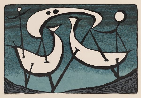 Editor: This is Paul Klee’s "The Barbed Noose with the Mice" from 1923, done in watercolor. It has a sort of playful yet menacing feeling to it, with these abstract shapes that only vaguely suggest a noose and some tiny mice scattered around. How do you interpret this work? Curator: I see here an articulation of primal fears, rendered in Klee’s distinctive visual vocabulary. The "barbed noose," though abstract, evokes anxiety, the threat of capture or entrapment. It isn't merely the physical threat, though. Note the barbed edges. How might these barbs relate to our deeper anxieties of choice, circumstance, or inescapable destiny? Editor: That makes me think about the mice. They seem so small and vulnerable, almost indifferent to the looming noose. Curator: Precisely! The mice act as potent symbols. In many cultures, mice symbolize vulnerability, but also persistence and even, paradoxically, destruction. Klee is setting up a visual dialectic between power and powerlessness. This evokes deeper questions, wouldn’t you agree, about how such dynamics function on both societal and individual levels? Editor: Definitely. I didn't consider the deeper symbolism before, seeing it as more of a whimsical composition. Curator: Klee often juxtaposed seemingly disparate elements to unlock subconscious associations. Do you suppose there are other common associations that are tied with colors, or shapes, used by Klee here? Consider this work as an arrangement of these deeply personal, deeply impactful, symbols. What message did Klee want to pass to us? Editor: I think I understand how to look deeper now, considering not only the elements but what they mean as symbols with an emotional context. Curator: Exactly! Art becomes a mirror reflecting our shared anxieties, memories, and hopes through powerful, symbolic shorthand.