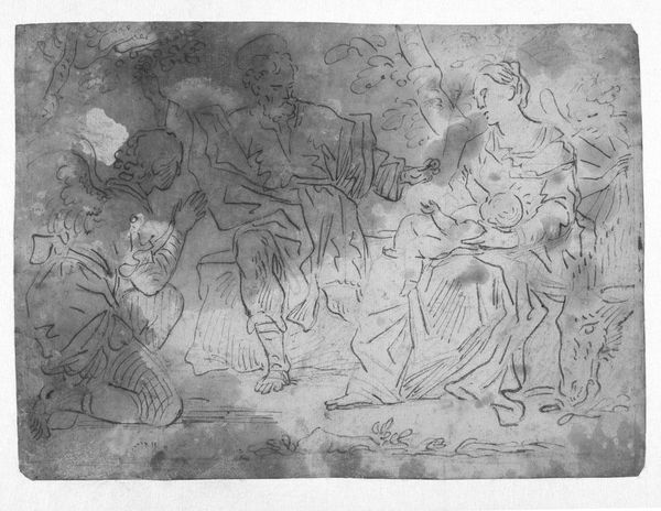 Curator: The Harvard Art Museums hold this intriguing drawing, "Sketches of Lions and Antelopes," by an anonymous artist. Editor: It's strikingly raw. The composition, with those sketched lions looming over the antelopes, feels almost like a power diagram. Curator: Indeed. The visible layering of the sketches reveals the artist's process. One can imagine them studying the ways animals were produced as social objects. Editor: How do you mean? Curator: This piece could function as a preliminary sketch for something larger; the lions could have been used in later productions of textiles or mosaics. Editor: That's interesting. The act of sketching and redrawing, mediated via public image as a material act itself, might also have served as a way of understanding natural power dynamics within the socio-political sphere. Curator: Exactly! I see both the artist's exploration of form and a glimpse into how these animal figures functioned within society. Editor: A raw yet illuminating intersection of form, function, and meaning.