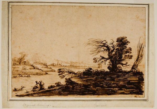 Editor: This is "Waterrijk landschap" or "Watery Landscape," an etching by Arnoud Schaepkens created sometime between 1831 and 1904. It’s so delicate. The detail feels quite intimate. What catches your eye, what's your take on this artwork? Curator: For me, this tiny etching evokes a feeling of stillness, a kind of tranquil melancholy that I find incredibly moving. The artist has masterfully captured the quiet essence of a Dutch landscape, hasn't he? It’s interesting how a single line can conjure up the sensation of wind rustling through the trees. Editor: It's incredible how much is conveyed with so few lines! The reflection of light on the water almost tricks the eye into seeing depth. How does its narrow format contribute to its meaning? Curator: Precisely! It's as if Schaepkens is inviting us to glimpse a secret world. The panoramic view in a small space pushes our eye to wander; like memories, the image seems to go on and on...Do you see how the dense foliage in the foreground both obscures and reveals? What is it obscuring from you? Editor: It does feel a little hidden, like looking through a dense forest. Perhaps its scale is meant to contrast the vastness of nature to create something much more internal? Like nature reflected in someone's mind. I can almost hear the wind blowing! Curator: That's beautifully put. I think you’ve hit upon something very significant there. The emotional content and the composition dance hand-in-hand to stir that particular something in us. Editor: I agree. This close examination has heightened my perception of landscapes. The etching feels almost like a memory etched into paper. Curator: I love that description; it truly is a dance of perception and memory!