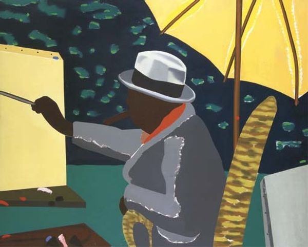 Charly Palmer’s painting, Mule, is made with acrylic on canvas, a common combination for contemporary painters. But the way Palmer handles these materials is what makes the work so compelling. The thick application of paint gives the entire composition a feeling of weight, echoing the heavy labor suggested by the figures. Notice how the artist uses the material qualities of acrylic to render form, and the blocky composition, built up from many distinct strokes. There’s a clear connection here to the long history of figurative painting, but also a distinctive approach that acknowledges a debt to folk art, prioritizing direct expression and immediacy over illusionism. The figures, working with the animal, suggests the deep reliance on manual labor that defined much of the African American experience, particularly in the rural South. Palmer does not shy away from this history; he embraces it, offering us an image of dignity and strength. Only by understanding the history of labor and class, can we appreciate the full depth and complexity of this work.