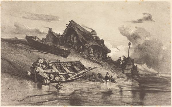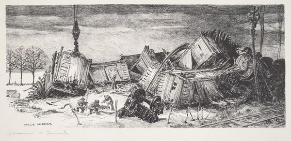 Edwin L. Fulwider made this print, Glacial Boundary, with lithographic crayon. The marks are dense and almost velvety. You get the feeling that Fulwider is interested in both the land as something shaped by natural forces, and the way the people who live on it shape the land in turn. I can almost feel the weight of that old plough, and the slow plod of the horse. Look how the contours of the field echo the curve of the hill above, and the dark smudges of trees. There's a real harmony. I’m reminded of the Regionalist painters like Grant Wood, although there's something a bit more unsettling here. The dark sky and slightly wonky buildings suggest a world that is both solid and on the verge of collapse. Ultimately, this tension between stability and uncertainty is what makes the print so compelling.