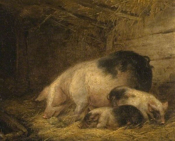 James Ward painted “A Chinese Sow” during a transformative period of British agricultural history, likely in the early 19th century. Ward was celebrated for his dynamic animal portraits. This work captures a specific breed, reflecting the burgeoning interest in selective breeding during the agricultural revolution. Here, the sow is depicted not merely as livestock, but with an individual presence. The depiction of animals—particularly livestock—was often intertwined with notions of land ownership and national identity. The painting invites us to consider how the economic value and cultural significance of animals are represented. What does it mean to see a 'Chinese' sow in the English countryside? How does it relate to notions of exoticism and domestication? Ultimately, Ward's “A Chinese Sow” offers insight into the social and economic values that shaped the English countryside. It encourages us to think about the relationship between humans and animals and how identity is ascribed across species.