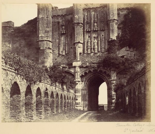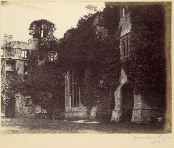 This albumen silver print, titled "The Cloisters, Tintern Abbey," was captured by Roger Fenton in the mid-19th century, a period marked by significant social change and burgeoning industrialization in Britain. Fenton, a middle-class man with social and political aspirations, turned to photography as a fine art. Here, the crumbling architecture of Tintern Abbey becomes more than just a ruin; it is a backdrop against which Fenton stages a tableau of Victorian life. Women are seated while a young girl stands, her gaze directed to the right, and men stand by the gate. The image evokes a sense of nostalgia for a pre-industrial past, a yearning for spiritual connection amid the rapid changes of the era. The photograph invites us to reflect on the Victorian construction of gender roles, and the social values of the time. It's a poignant reminder of how the past is continually reimagined to serve the needs and desires of the present.