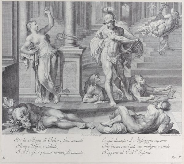 Curator: This print, likely created between 1740 and 1768, is titled "A group of elegantly dressed people playing the harp and a guitar." It's currently held at the Metropolitan Museum of Art. What's your initial take? Editor: It feels…posed. Staged. The monochrome and the somewhat stiff figures give off this very controlled, almost artificial atmosphere. Curator: Indeed. Note the baroque aesthetic. Crivellari's approach plays heavily on idealized forms. Look closely at the crisp lines, the balanced composition with figures clustered on either side creating symmetry... This elevates the mundane act of making music. Editor: Yes, the staging feels less like a natural gathering, and more like a carefully constructed performance intended for display and for a certain elevated audience, wouldn’t you say? The expressions, while pleasant, are so uniform. It’s all very controlled, broadcasting luxury and perhaps social harmony. Is it known to be commissioned work perhaps? Curator: Considering the period, patronage would have been significant, playing into Baroque art's function to glorify the powerful. Though explicit historical records may not pinpoint the original commissioner of this piece, we can observe the clear message of refinement the image conveys, placing value in courtly pastimes. Editor: Right. You see how everyone's impeccably dressed, each in their specific way contributing to this scene of cultivated leisure, and I wonder: to what extent are these prints reflections of the daily life and social events, versus articulations of how aristocracy intended to appear to others? Curator: Precisely! The textural work across the image offers complexity when detailing the folds in the elegant draperies and the delicate rendering of the musical instruments. Observe, in particular, how tonality reinforces form in service of compositional clarity and legibility of symbols of musical refinement. Editor: Ultimately, it's a document. An orchestrated narrative of social grace meant not only to depict but to perform wealth and taste. This reminds me about how powerful these images were in codifying social values. I learned a lot, thank you for the analysis! Curator: The pleasure was all mine. It's remarkable how much even a seemingly simple genre scene reveals upon closer scrutiny.