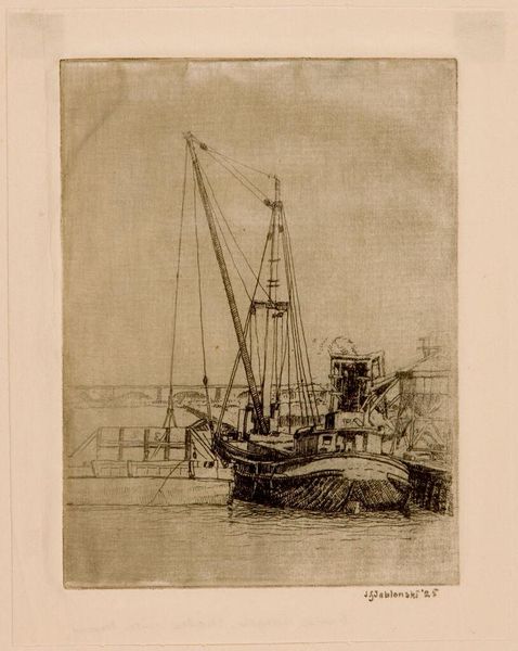 Editor: So this is Fernand Combes's "Honfleur Le Vieux, 'Leurs Ports'," created in 1912. It’s a charcoal drawing, and I’m struck by the sort of hazy, dreamlike quality it has. What catches your eye about this particular artwork? Curator: The recurring motif of the boat, specifically, it has resonated through centuries as a symbol of journeys, transitions, and even the soul's passage. Notice how the sails are prominently displayed. Editor: They almost feel like they’re reaching upward. Curator: Precisely! Sails have often symbolized ambition, aspirations, and even the divine breath or inspiration filling one's life. In what other ways does it resonate with our shared understanding of human experience and history? Editor: I guess the boats feel like they're cramped, and maybe suggest that life in that time wasn't always very spacious or free. Curator: It could well symbolize the burdens and constraints within society and perhaps the desire to escape them. What kind of stories do you imagine when you observe this? Editor: I’m not sure, perhaps stories about hard work and adventure in a difficult environment. It makes me think about how so much of our world's economy used to be water-based, as opposed to today when air or land travel is so important. Curator: It beautifully portrays an early mode of industry while conveying a personal relationship. It reminds us how images act as time capsules, evoking our memories and connections through time. Thanks to the cultural understanding the symbols provoke! Editor: That's a perspective I hadn't considered. This little trip through history helped see new perspectives on Combes.