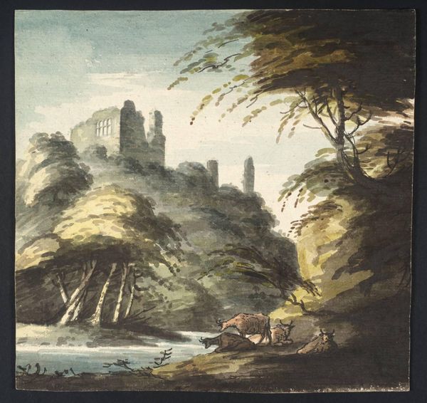 Friedrich Rauscher painted this landscape with tempera on paper; observe the ruin which dominates the scene, a symbol pregnant with meaning. In Rauscher's time, ruins were a popular motif representing the transience of human achievements and the inevitable decay that time inflicts. This fascination echoes through centuries, harking back to the classical world, where ruins evoked contemplation on past grandeur. Think of the Roman ruins depicted in Renaissance art, symbols of lost empires and the vanity of human ambition. Here, the ruin is not just a stone structure but a vessel carrying cultural memory. Its crumbling walls speak to the cyclical nature of history, a poignant reminder that even the mightiest structures eventually return to dust. This echoes the psychological concept of the "memento mori," urging us to reflect on our mortality. These images engage us on a subconscious level, stirring deep emotional and psychological responses that transcend time. This symbol resurfaces, evolves, and takes on new meanings in different historical contexts.