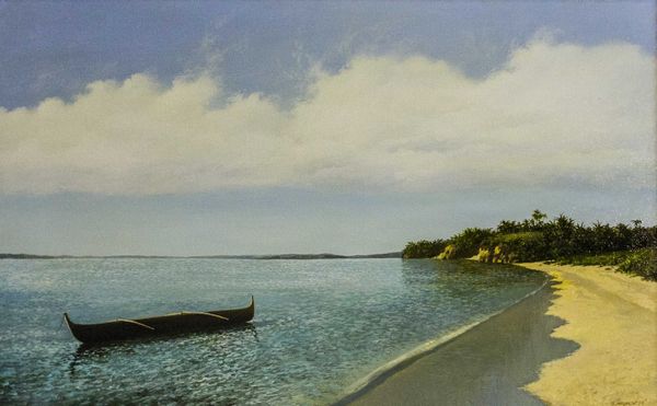 Editor: Here we have "Canal Bridge," an oil painting, possibly painted en plein air, by Dan Graziano. I’m struck by the contrast between the bright white bridge and the dark, almost murky water below. What do you see in this piece? Curator: I see a visual representation of societal divisions. The pristine white bridge acts as a physical structure, seemingly offering passage, while the murky water beneath, reflecting distorted images of the surroundings, could symbolize the obscured realities for marginalized communities. Does this bridge truly offer equal access, or does it merely create a superficial appearance of connection? Editor: That’s a fascinating interpretation! I was just thinking about the play of light and shadow. Curator: But consider this: The artist chose this specific perspective. The bright, almost blinding, light on the bridge could represent the blinding effects of privilege, while the obscured depths hint at untold stories and histories that remain hidden. Think about whose stories are reflected in the "official" narrative and whose are relegated to the shadows. Editor: So you're saying the idyllic scene might be masking a deeper commentary on social inequity? Curator: Precisely. This "Canal Bridge," seemingly so peaceful, invites us to question the very foundations upon which these idyllic spaces are built. Is this tranquility accessible to everyone? Or is it maintained through the marginalization of others? Editor: I never would have looked at it that way, but it definitely adds another layer of meaning. Thanks for pointing that out. Curator: My pleasure. Art can be a powerful tool for social commentary, even in seemingly simple landscapes. Always question what appears on the surface.