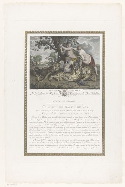 Curator: I'm always so captivated by engravings. Look at this piece, "Perseus en Andromeda," dating from 1786 to 1808 by Jean-Louis Delignon. The scene is epic. Look at Andromeda chained to a rock, Perseus swooping in—it’s all very dramatic. What catches your eye? Editor: Well, I find the detail astonishing for an engraving. The contrast between light and shadow gives it such depth, and the story is immediately engaging. But I am intrigued by the monster itself; why depict it that way? Curator: Ah, the monster! A truly delightful conundrum, isn't it? It seems our friend Delignon has taken a few liberties, perhaps drawing inspiration from various artistic traditions or letting his imagination run wild. Instead of just copying ancient accounts, maybe he mused, what if I made this serpent with spiky scales AND prominent fangs? What would that suggest about its insatiable hunger, its monstrous anger? Editor: So, artistic interpretation trumps historical accuracy sometimes? Curator: Absolutely! He isn't just illustrating a myth; he’s making a statement about heroism, beauty, and fear, wrapped in a very pleasing and intriguing package. Editor: It's a fantastic point! The monster’s oddness almost heightens the other figures' heroism and vulnerability. I guess I was too focused on what it *should* look like, and missed the point of the artist making it his own. Curator: Precisely! What have we truly understood if we don’t try to find our own voice and perspective on things.