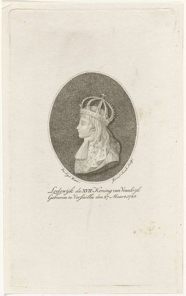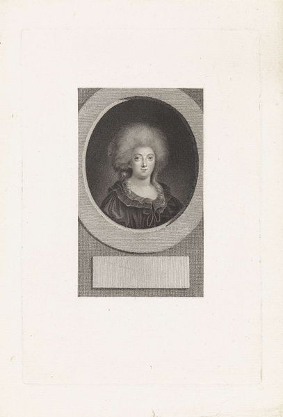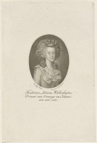 Hendrik Roosing created this print, "Portret van Wilhelmina van Pruisen," sometime in the late 18th or early 19th century. Wilhelmina, a Prussian princess, was a prominent figure during a tumultuous period in Dutch history. Her marriage to William V, the Prince of Orange, solidified Prussian influence in the Dutch Republic. She became deeply embroiled in the political conflicts between the Patriots, who sought democratic reforms, and the Orangists, who supported the Stadtholder's rule. Wilhelmina was not afraid to exert her influence, and this portrait captures something of her determination. Portraits of women of this era often served to reinforce their status and project an image of virtue and authority, but this one hints at the subject's involvement in the political sphere. It serves as a reminder of the complex intersection of gender, power, and politics in the late 18th century.